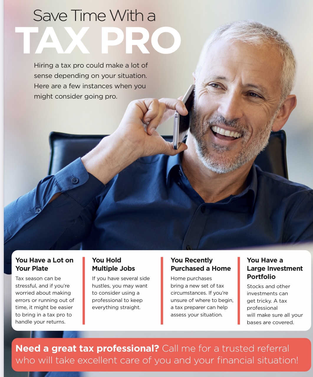 If you decide you need help with your taxes, give me a call. I can connect you to a trusted and thorough tax professional in my network who can get the job done right. Prepare now to get ahead of the game and make your life easier this spring!