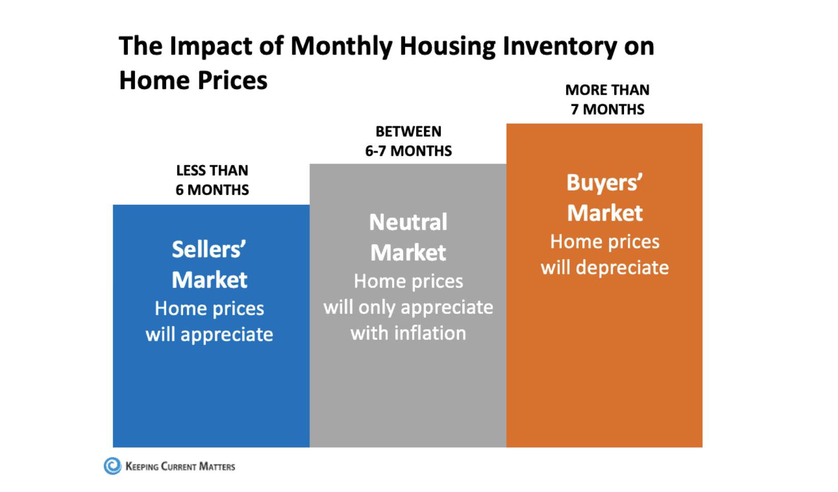 Historically, a 6-month supply is necessary for a ‘normal’ or ‘neutral’ market in which there are enough homes available for active buyers (See graph below):