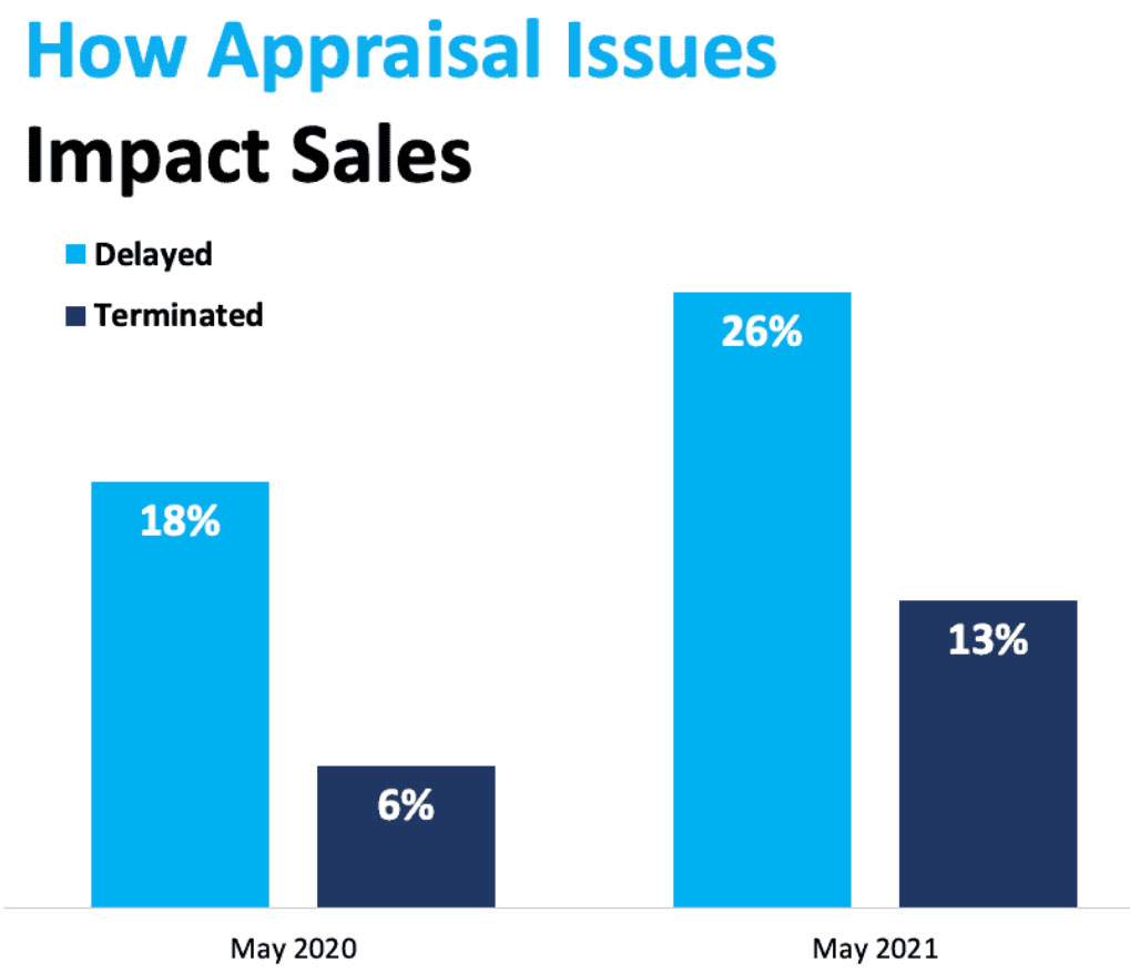The chart below uses the latest insights from NAR’s Realtors Confidence Index to showcase how often an issue with an appraisal slowed or stalled the momentum of a house sale in May of this year compared to May of last year.