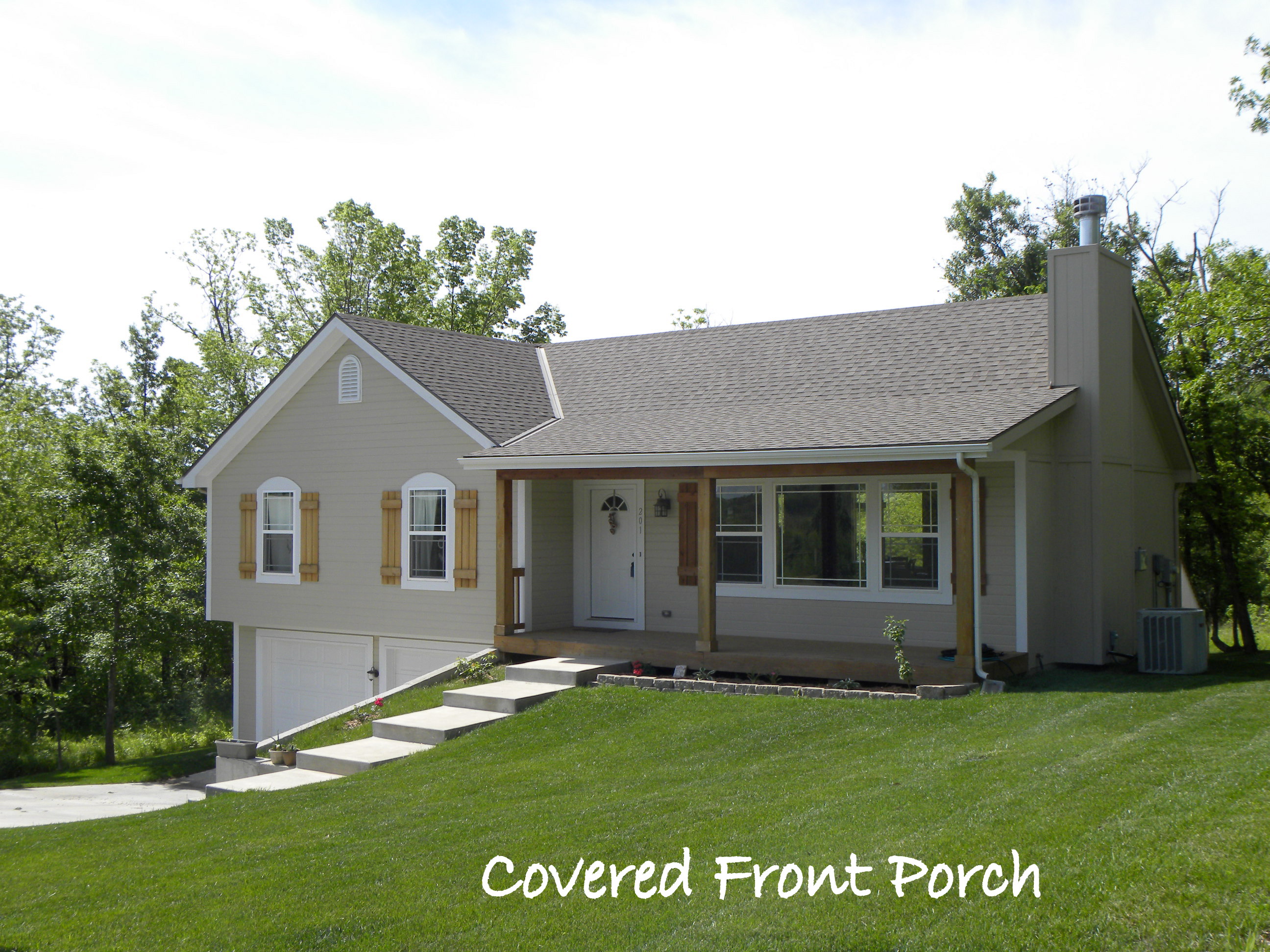 Country setting with city lot maintenance - surrounded by trees, 23 ft covered front porch great for enjoying those peaceful evenings, very open floor plan with vaulted great room/kitchen/dining area, wood-burning fireplace in great room, custom cabinetry, tile flooring in kitchen/dining, main floor laundry room, large walk-in closet in master, 12x9 deck with stairs off dining area, tile in both bathrooms, 9 ft walls in basement ready to be finished with stub in for full bathroom plus upgraded 8 ft. garage doors. $156,900