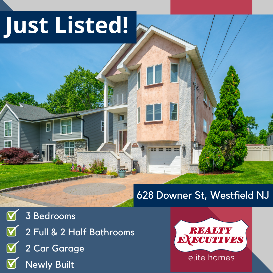 A beautiful home at 628 Downer St in Westfield NJ has just been listed! This newly built home contains 3 bedrooms, 4 bathrooms (2 full & 2 half), close to NYC train and a two car garage!