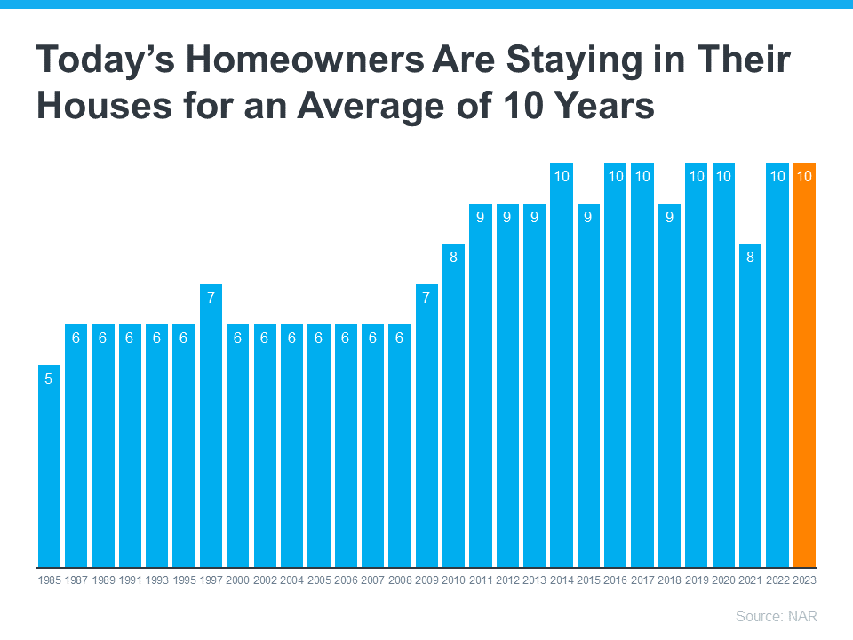 Today, homeowners are staying in their houses longer than they used to. According to the National Association of Realtors (NAR), since 1985, the average time a homeowner has owned their home has increased from 6 to 10 years (see graph below):