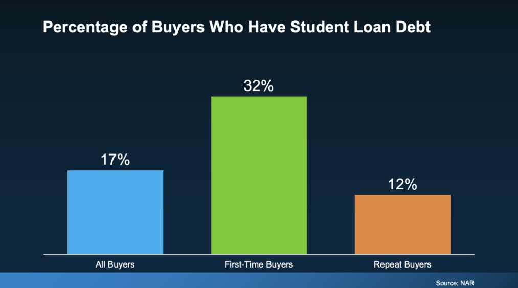 And the data backs this up. An annual report from the National Association of Realtors (NAR), shows that 32% of first-time buyers had student loan debt (see graph below):