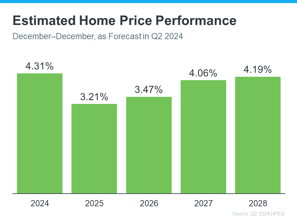 Each quarter, Fannie Mae releases the Home Price Expectations Survey. It asks over one hundred economists, real estate experts, and investment and market strategists what they forecast for home prices over the next five years. In the latest release, experts are projecting home prices will continue to rise through at least 2028 (see the graph below):