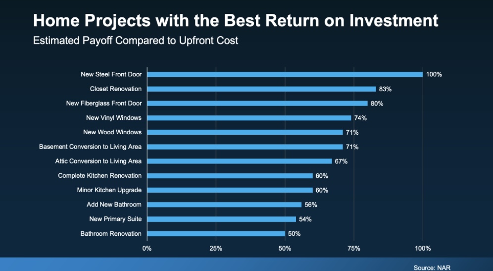 If you’re not sure which projects are worth your time and money – here's some information that can help. A studyfrom the National Association of Realtors (NAR) shows which upgrades typically offer the best return on your investment (ROI) (see graph below):