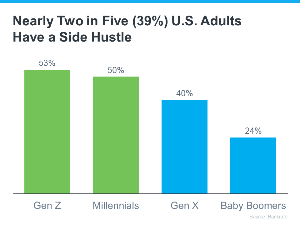 Does the rising cost of just about everything these days make your dream of owning your own home feel less within reach? Accordingto Bankrate, many people are seeking additional income through side hustles, possibly to cope with those increasing expenses and save for a home. This trend is particularly popular with younger individuals who may be dealing with student loan debt (see graph below):
