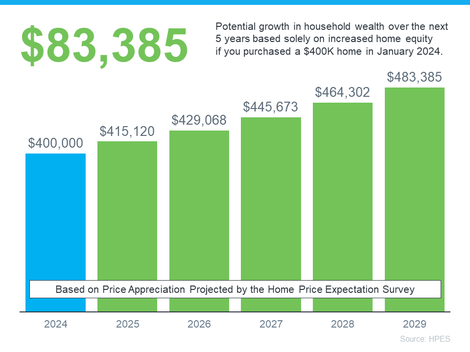 Imagine you purchased a home for $400,000 at the start of this year. Chances are, since you bought, you plan to stay put for a while. Based on the HPES projections, if you live there for 5 years, you could end up gaining over $83,000 in household wealth as your home grows in value.