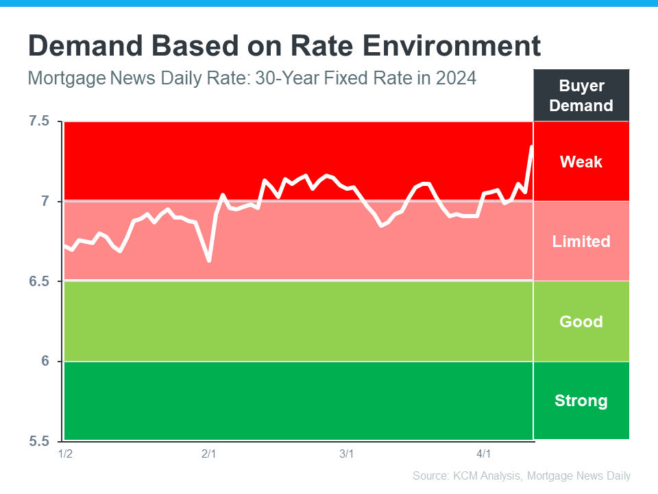 In the housing market, there’s a longstanding relationship between mortgage rates and buyer demand. Typically, the higher rates are, you’ll see lower buyer demand. That’s because some people who want to move will be hesitant to take on a higher mortgage rate for their next home. So, they decide to wait it out and put their plans on hold.