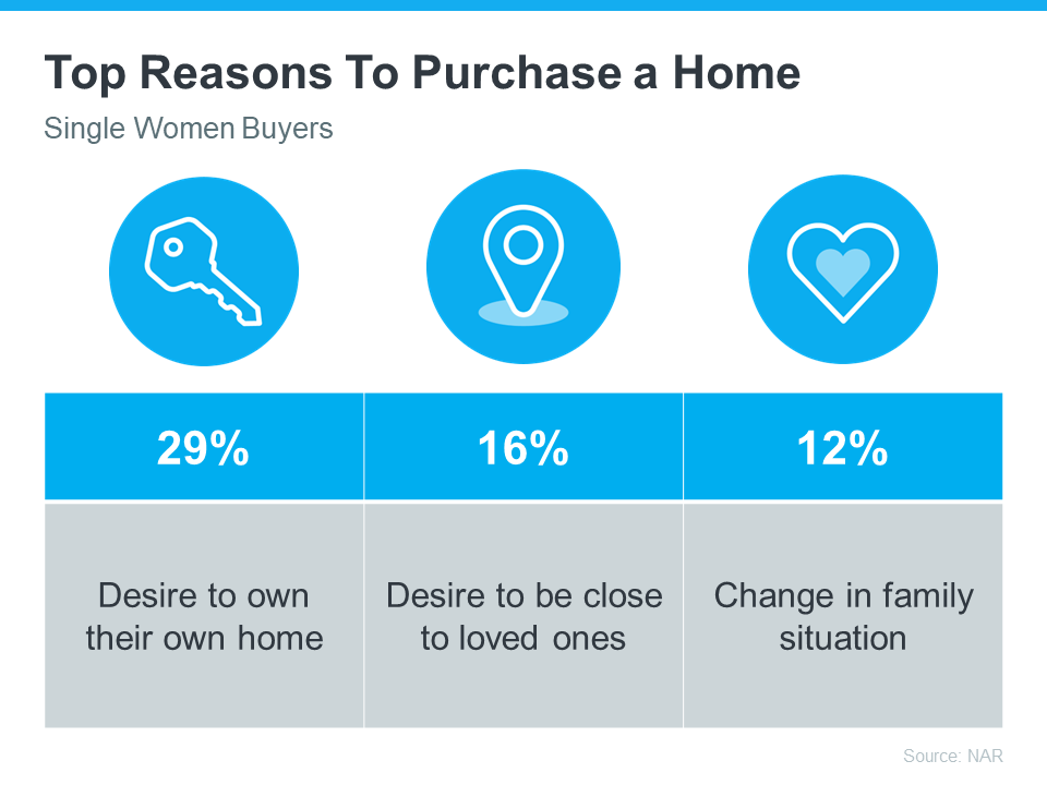 The same report from NAR shares the top reasons single women are buying a home right now, and the reality is, they’re not all financial (see chart below):