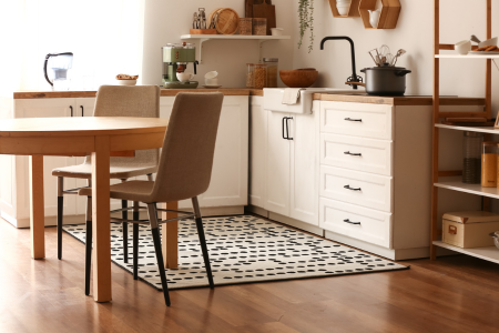 If the kitchen floor looks a bit worn or boring, a pretty rug or mat with bright patterns or designs can give it an instant upbeat feel. Areas in the kitchen prone to lots of foot traffic, like the stove area, sink area, or the spot in front of the fridge or door, can benefit from a mat or rug.