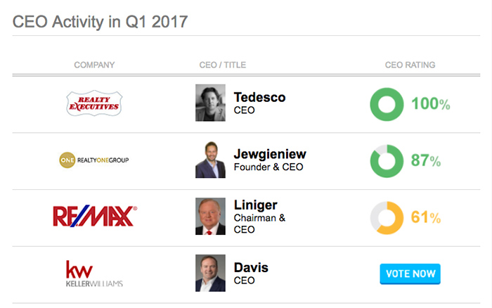 Owler just released their quarterly CEO Faceoff, a head-to-head matchup comparing crowdsourced business insights on leaders in their real estate competitive set, and Tedesco is at the top of the list with a rating of 97 percent.