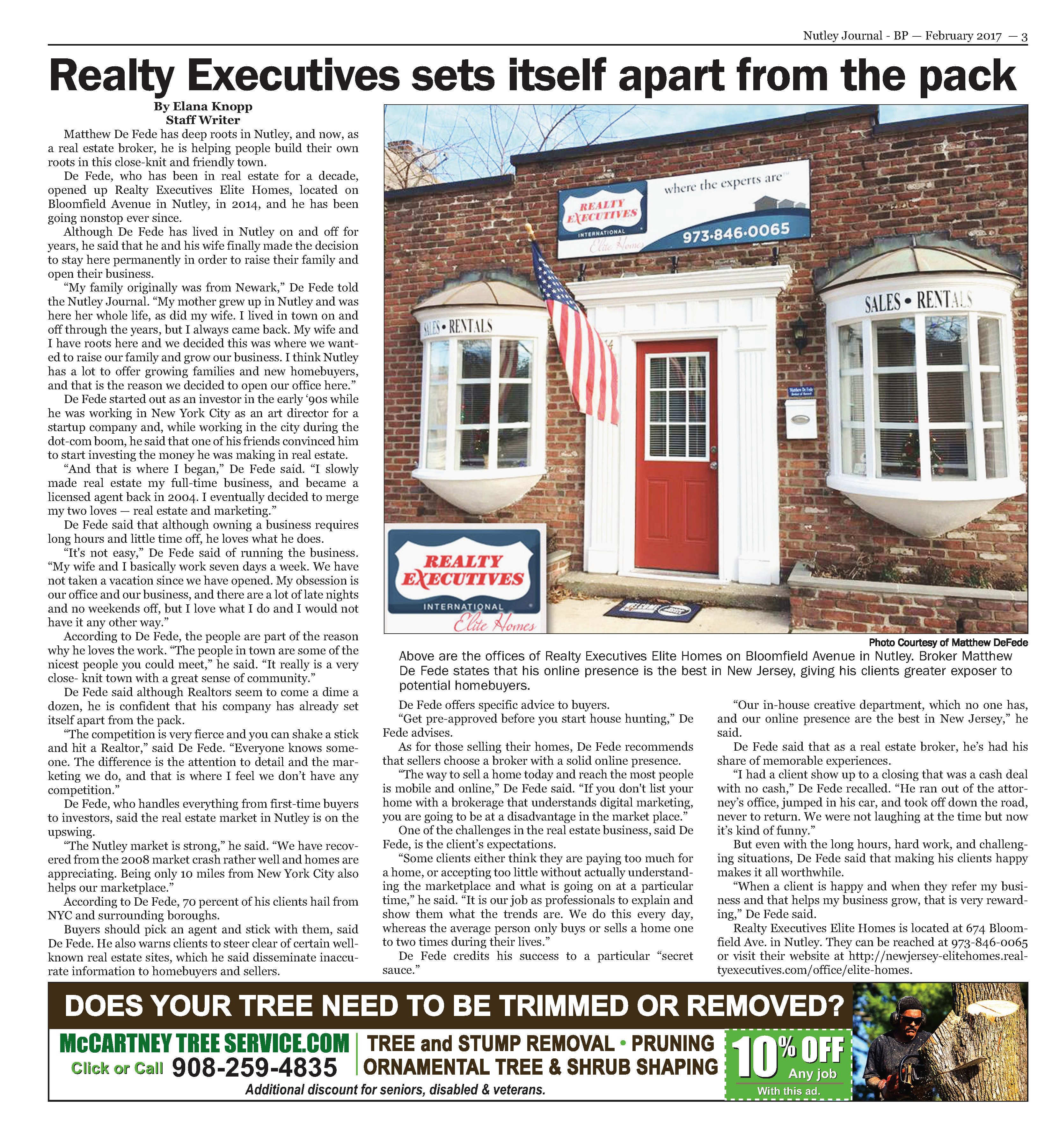 Realty Executives Full Page Article in the Nutley Journal