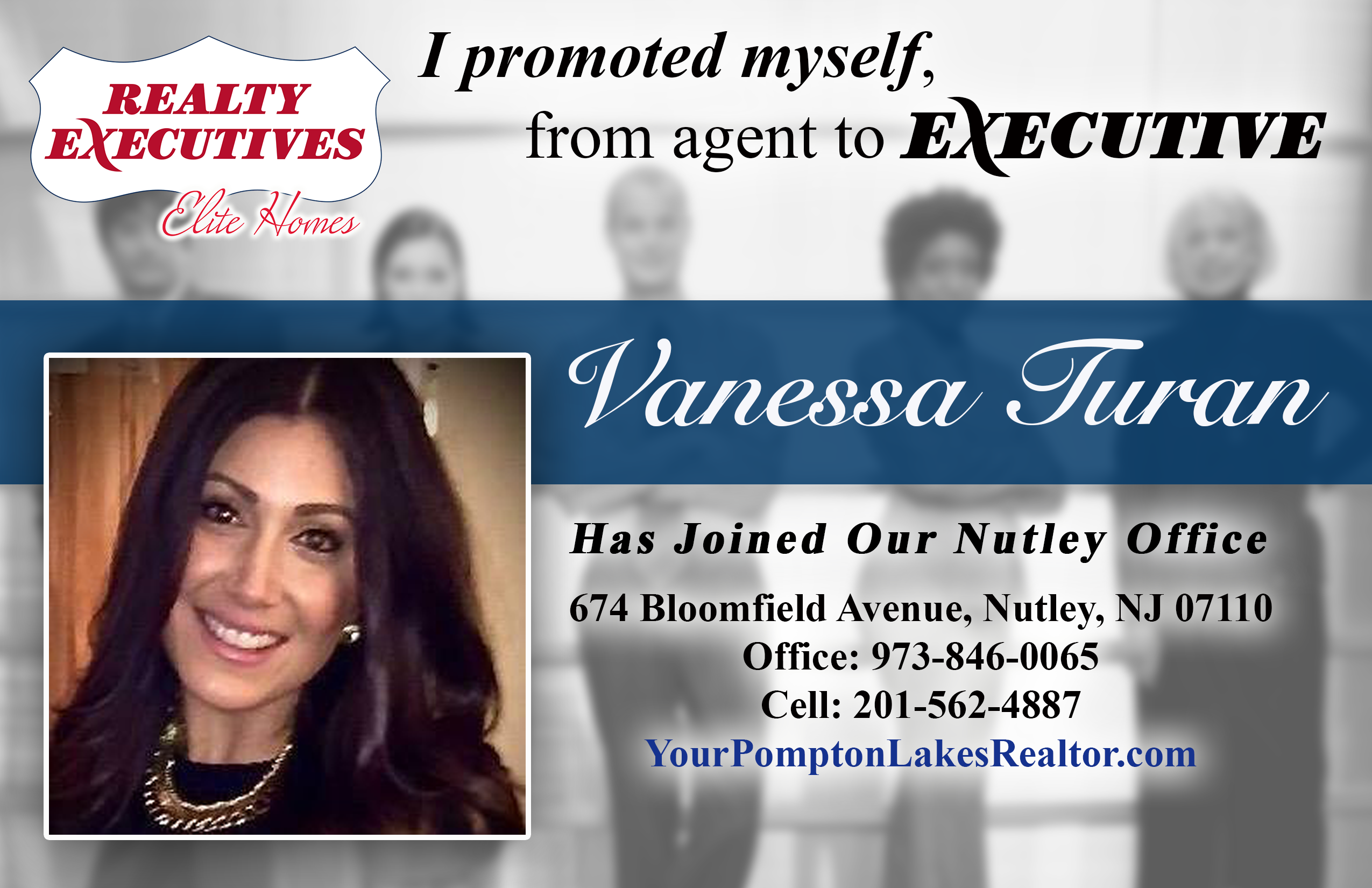 It is with great pleasure that I announce Vanessa Turan has joined Realty Executives Elite Homes, Vanessa comes from a corporate background she used to work for Apple Computers and is well versed in many areas of Real Estate, she specializes in the Pompton Lakes area of NJ but also has vast knowledge of Passaic, Morris, Essex and Bergen Counties please welcome her aboard. you can visit her website at yourpomptonlakesrealtor.com