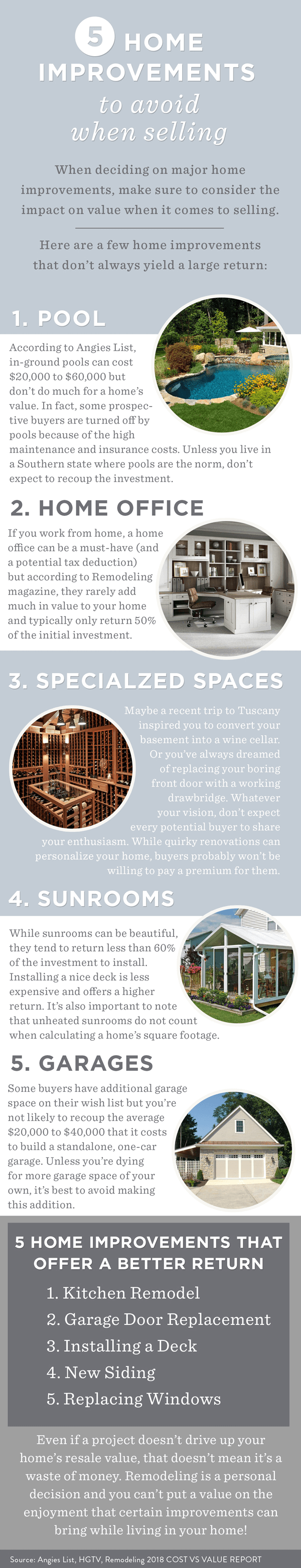 5 Home Improvements to avoid when Selling